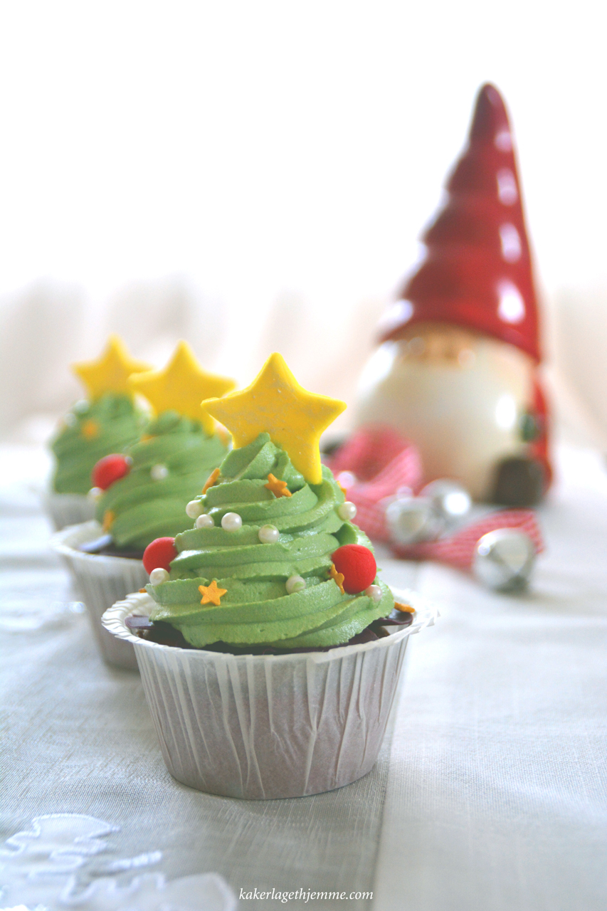 Bruk sprøytepose med en stor stjernespiss for å dekorere muffinser med kremen… den skal se ut som liten juletre på toppen.