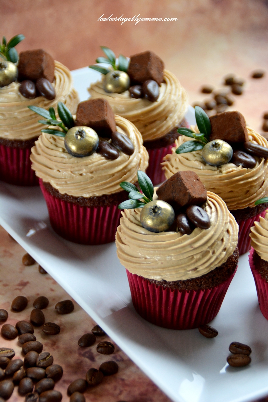 Overfør frosting til en sprøytepose og dekorer de helt avkjølte cupcakesene, deretter dekorer slik du ønsker.Nyt smaken av de hjemmelaget kaffe cupcakes.