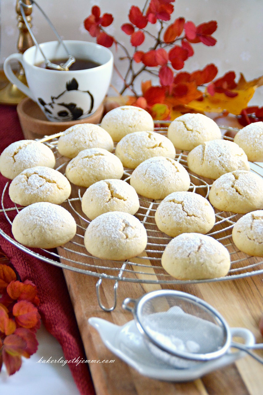 Deigen kan være litt klebrig, så er det en god ide å bruke litt mel på hendene når du skal forme kuler på circa cm i diameteren. Så plaserer du dem på bakepapiret med ca 5 eller mer cm avstand mellom.