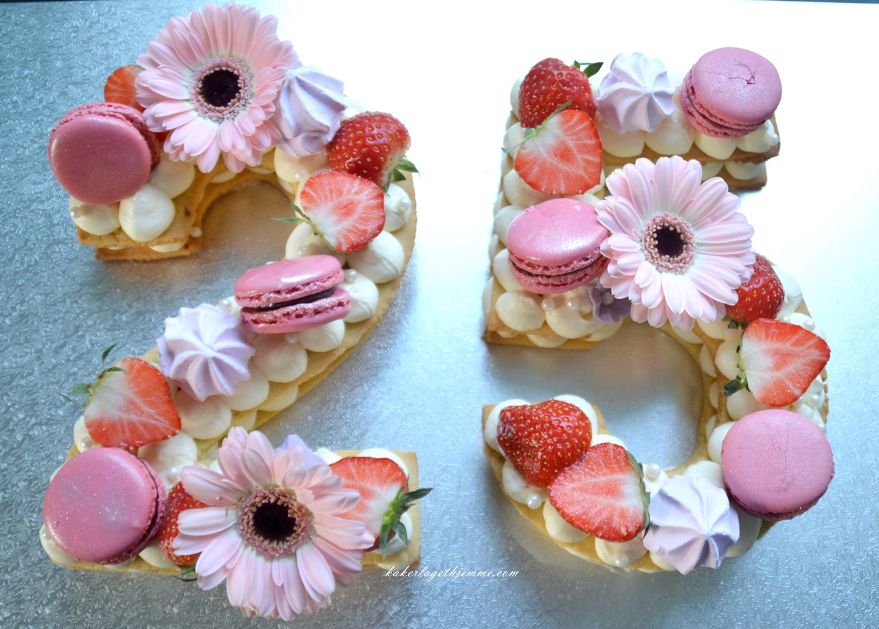 Fortsatt populær selv om første ideer på slik kake fant sted for et par år siden. Ikke rart, det er et pust av friskhet blant kjeks og marengs kaker, en fantastisk gave til jubileum, bursdag, Valentinsdag, praktisk talt for enhver anledning. Vi baker den i form av tall, bokstaver, hjerter … Vanligvis er de to kjeks (kan også lages av kakebunn delt i tyne plater) med lett vaniljekrem eller ostekrem slik jeg pleier lage. Den kan selvølgelig lages med forskjellige smaker på både kjeks og krem. Du er bare begrenset av fantasien :-). Kaken kan være litt tidskrevende hvis du tilbereder all dekorasjonen selv, men den er ikke vanskelig. Alt arbeidet kommer ned på å elte og bake kjeks (som kan bakes dagen eller noen dager før og oppbevares tørt) og tilberede en enkel krem. Smaker veldig godt og ser meget flott ut.