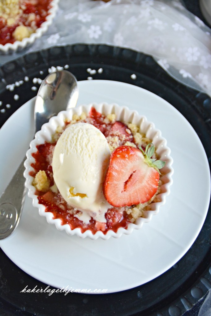 Server varme, gjerne med et skje vanilje iskrem på toppen.