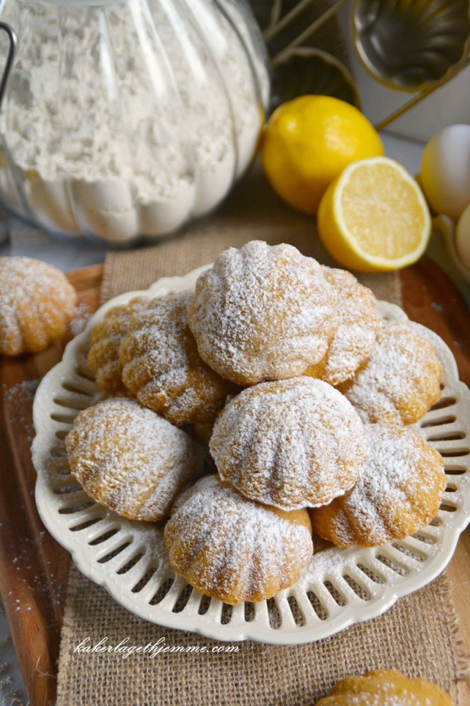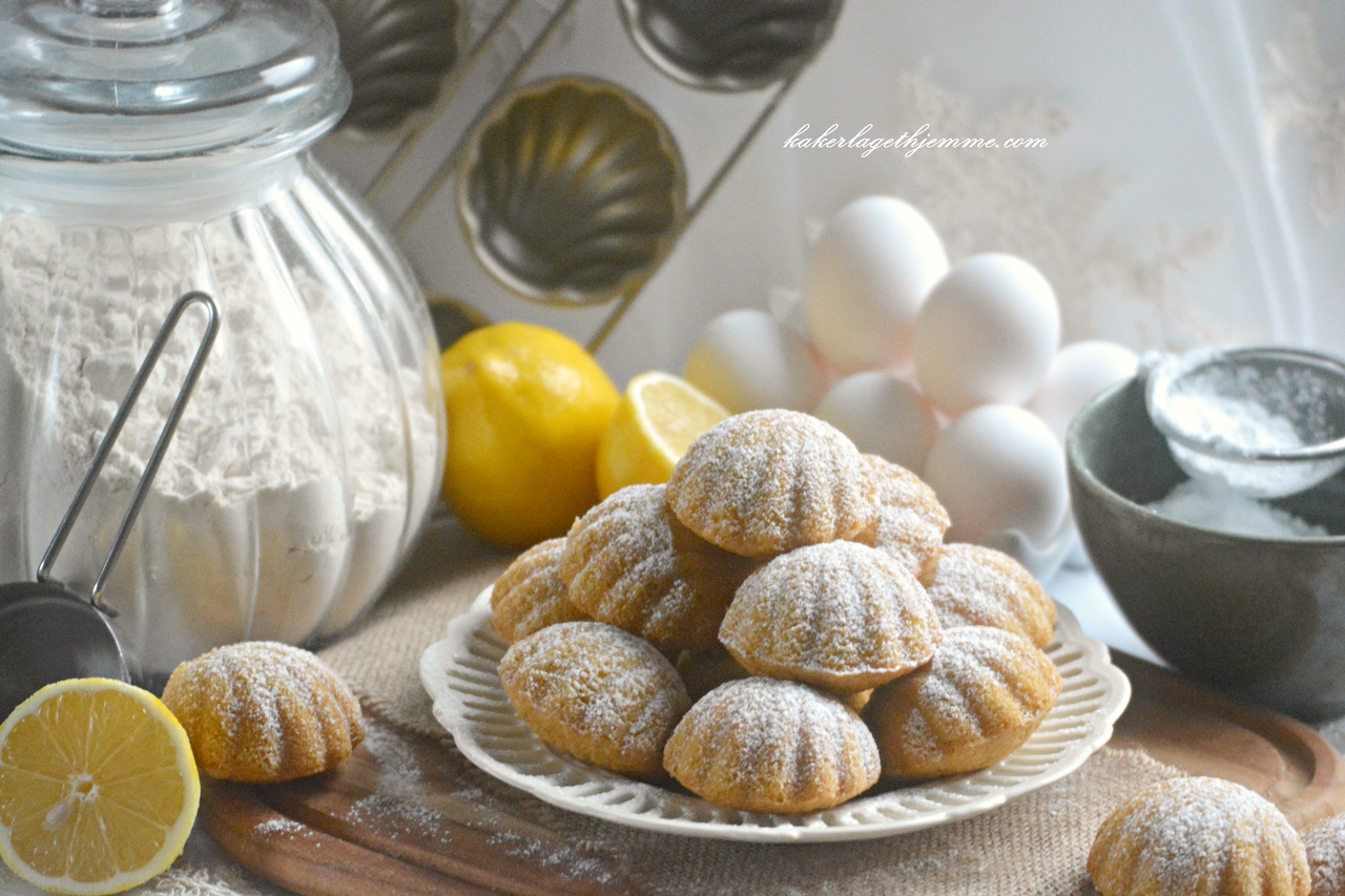 Mens jeg skriver dette, nyter jeg allerede mine nybakte Madeleines sammen med en kopp kveldskaffe, jeg trenger absolutt en ettersom det regnet hele dagen (og jeg mener det) og nå stoppet det så vidt, men jeg håper virkelig det har regnet ferdig for i dag … Selv om jeg ikke føler stor forskjell før og etter kaffe… tror jeg det er mer mentalt enn noe annet. 🙂 Uansett… den ene tingen du ikke kan lage Madleines uten er den skjellformede bakeformen som brukes til å lage de myke vaniljekakene med et hint av sitronsmak. Å kjøpe en er lettere enn å få et par eller flere skjell til å bake kaker i dem, da jeg forestiller meg at de første Madleines må ha blitt laget for lenge siden. Selvfølgelig kan du nå lage dem også i forskjellige smaker, men denne spesielle oppskriften er for klassiske vanilje Madleines, selv om det ikke er de som krever brunet smør.