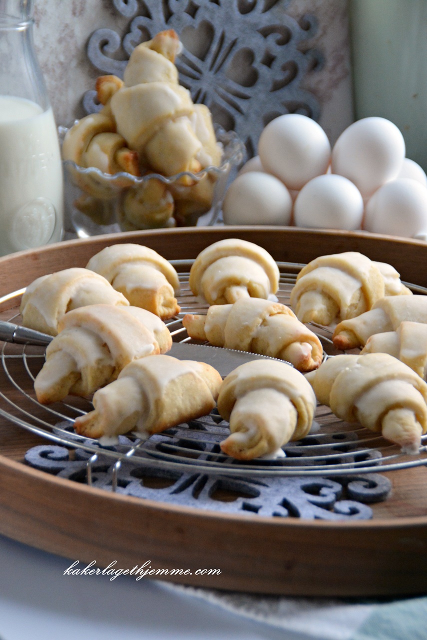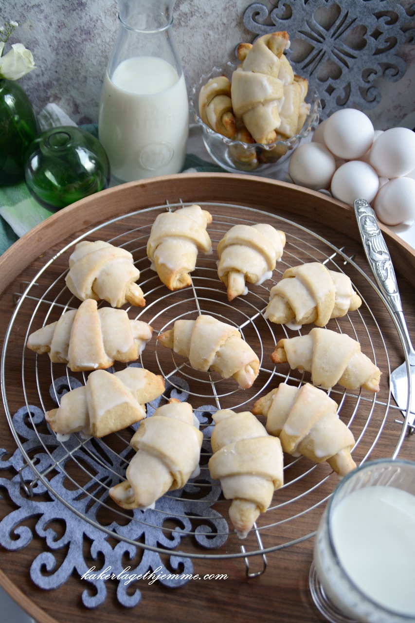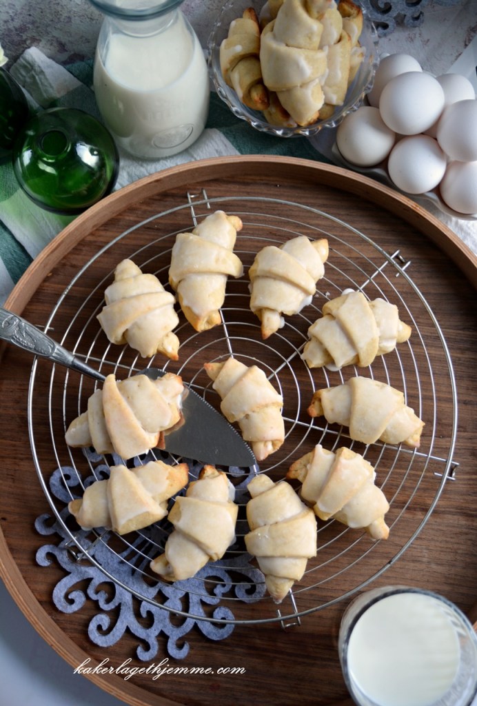 Disse halvmåner laget av enkel kremost deig er tilberedt på en enkel måte ved å legge alle ingrediensene i en bolle, blande og elte. Den enkle tilberedningen og deigen som ikke fester seg til hendene dine gjør dem veldig behagelige og raske å jobbe med, noe som også gjør dem problemfrie. De vil ikke fylles med noe, men de vil bli glasert med en vaniljeglasur i stedet, og bare med det er de fortsatt deilige, men hvis du tror du trenger mer av livet, kan du også spise dem med en favorittsyltetøy, sjokolade eller nougatt krem i tillegg.