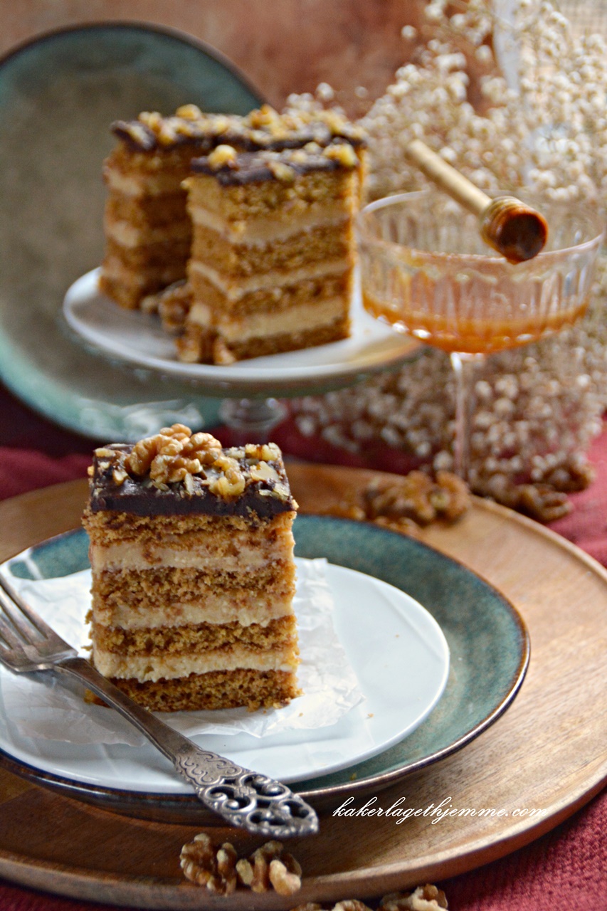 Honningkake lagene vil først etter baking være veldig harde, og det er slik de skal være… etter å ha smurt dem med det varme oste-fyllet og satt til avkjøling i noen timer eller best over natten blir kaken myk, fuktig og deilig.