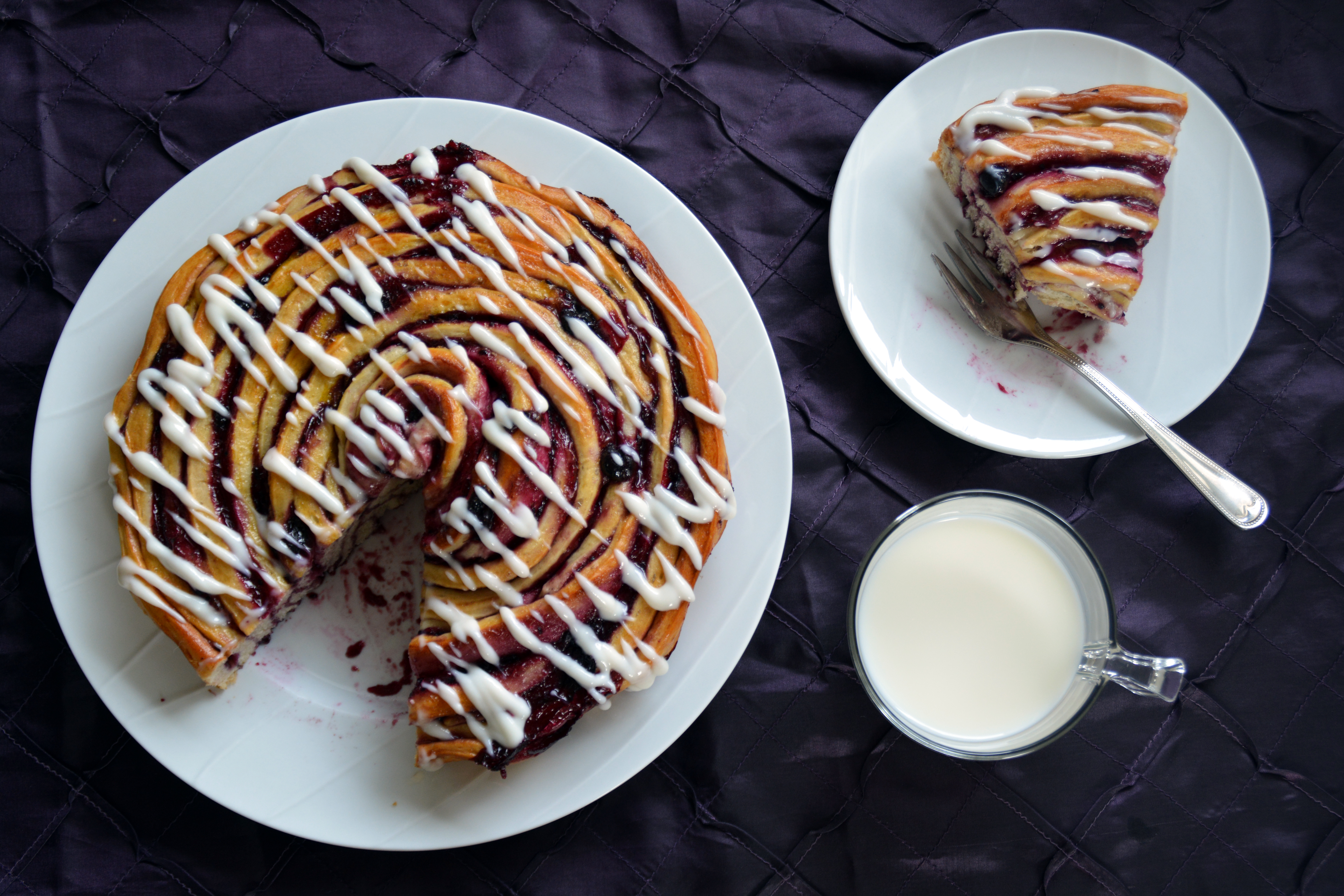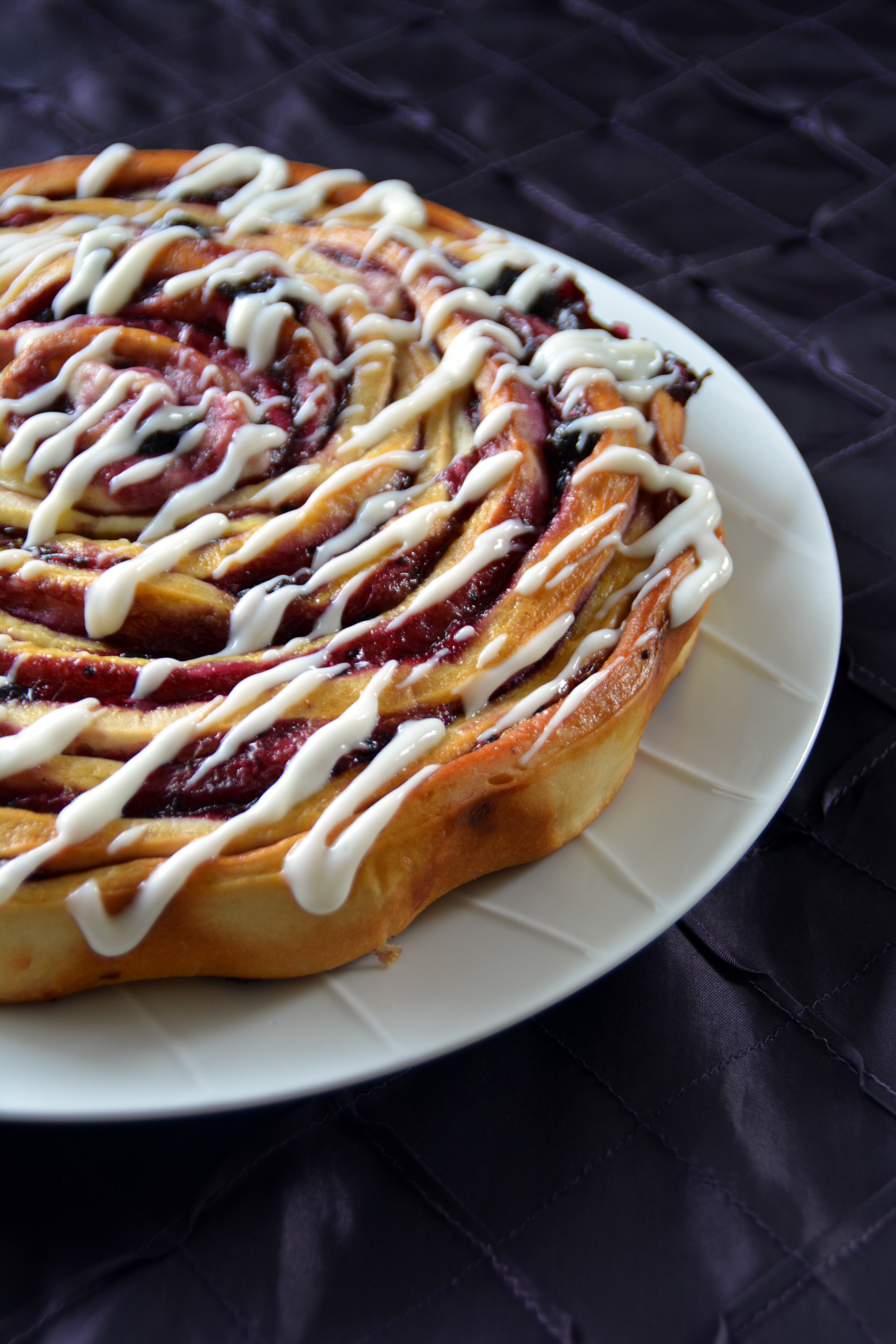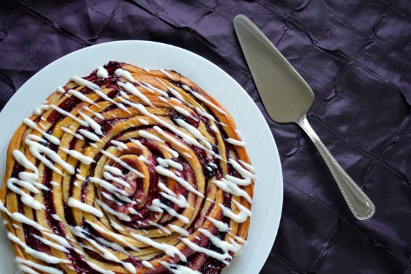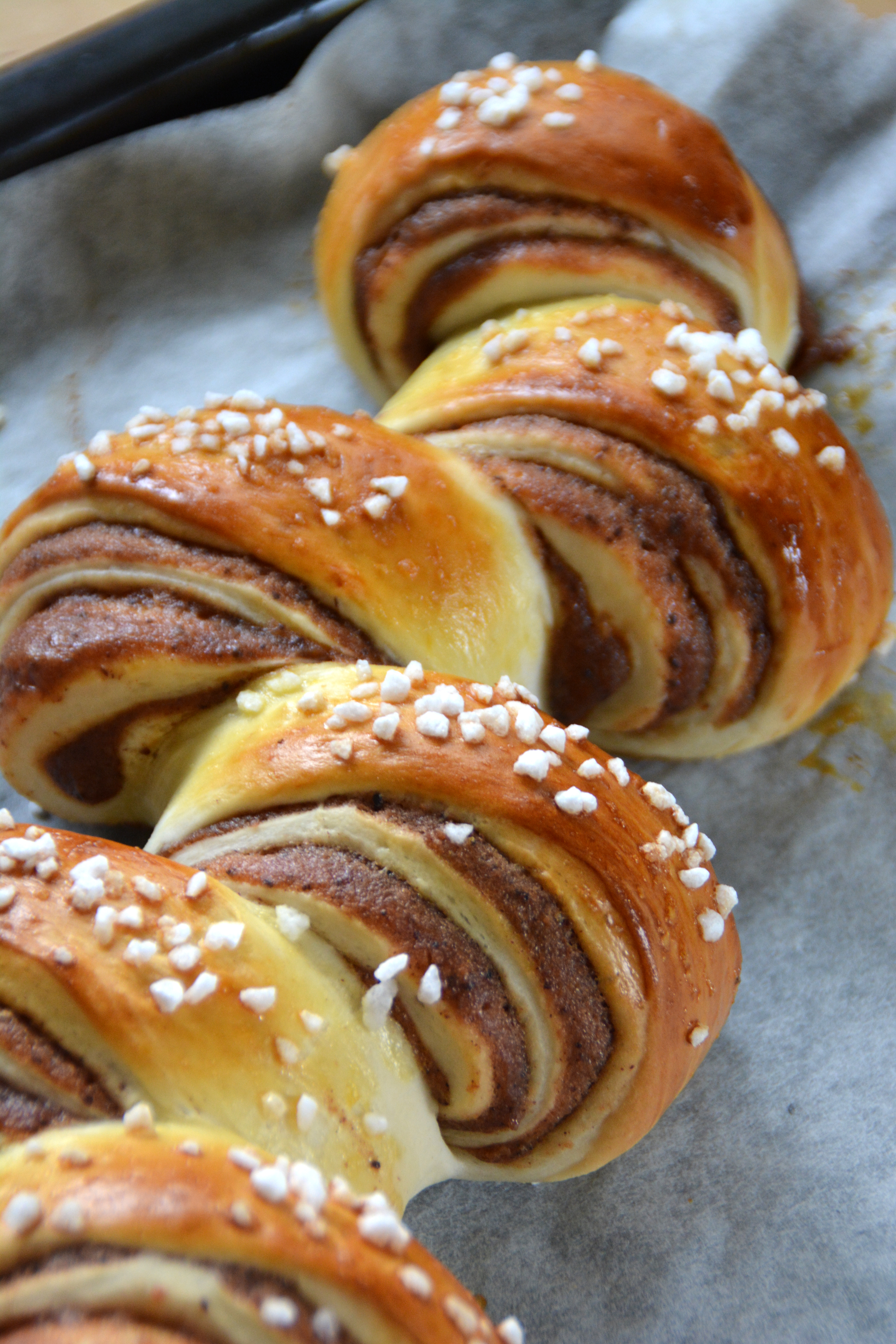 Rull deigen i rulle langs den lange enden. Skjær i 10-12 like skiver.