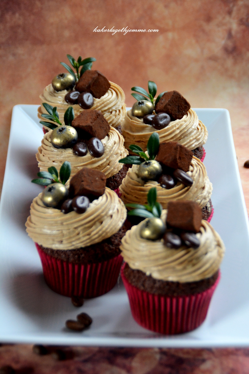 Nyt smaken av de hjemmelaget kaffe cupcakes.