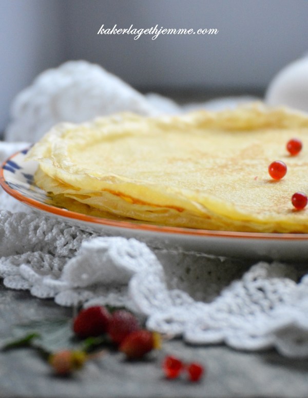 Deler oppskriften på en av familien min favorite retter nemlig pannekaker på fransk vis. Nydelige både med noe i tillegg, slik: syltetøy, sukker, karamell saus, ferske frukt og bær eller pisket kremfløte men meget gode uten noe som helst på også. Alle har nok egne måter å spise pannekaker på. Verdt å prøve med hjemmelaget appelsin sirup-saus slik crepes Suzette pleies lage.