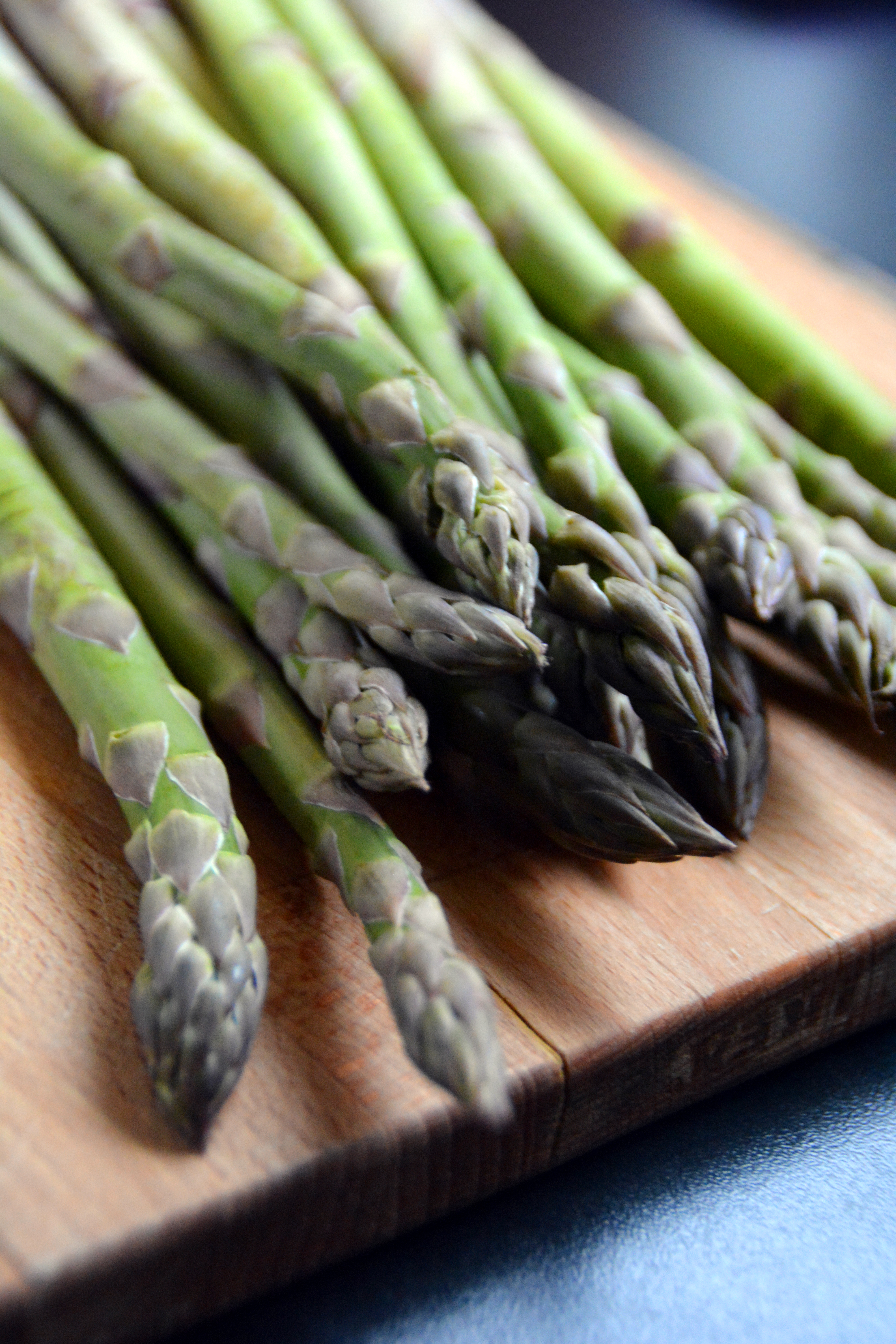 Skyll asparges, skjær av harde og tykke delene (ca. 3 cm), skår i 2 cm biter. Den harde spissen kan brukes til kjøttkraft av grønnsaker de ikke er egnet for å blande i suppe.
