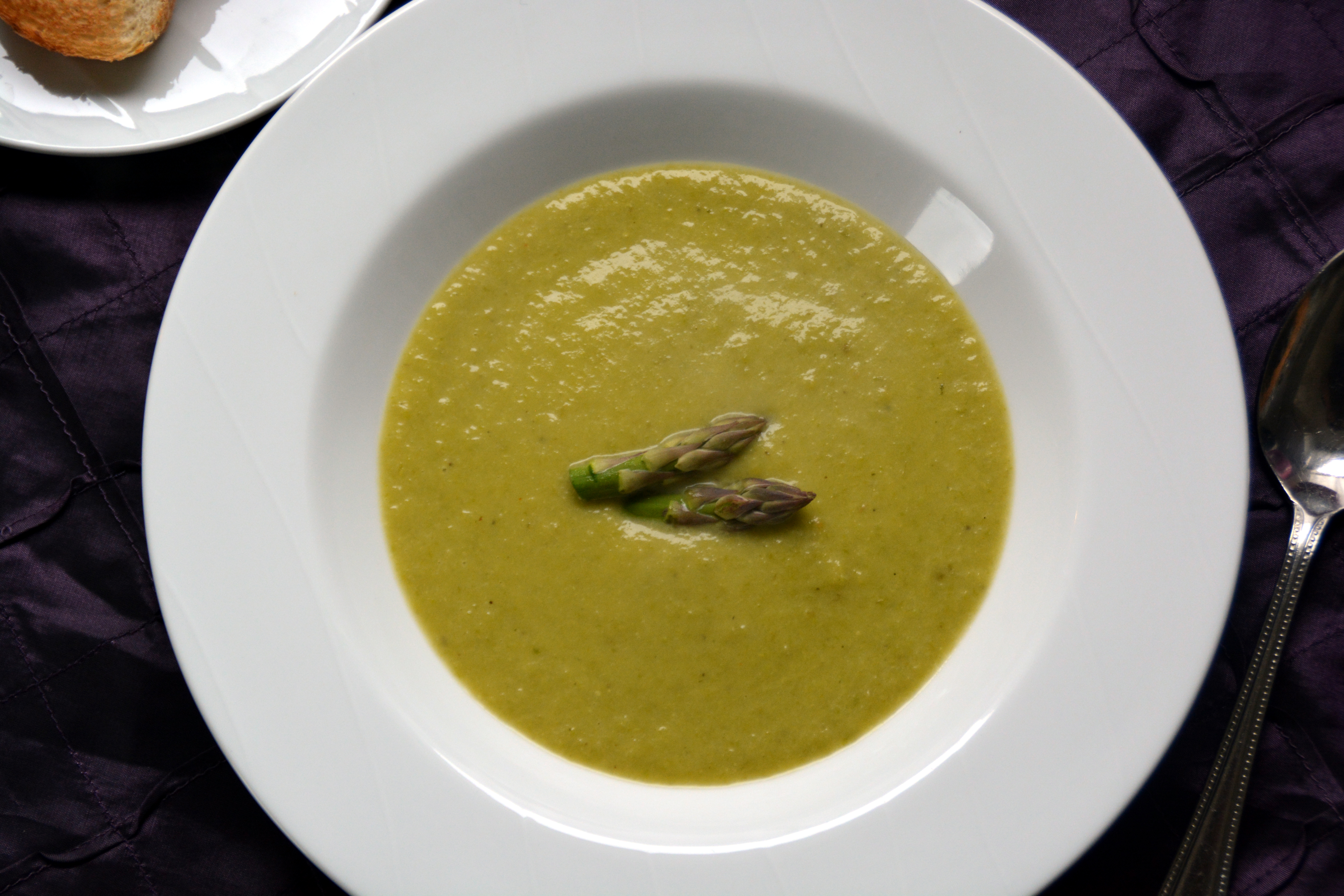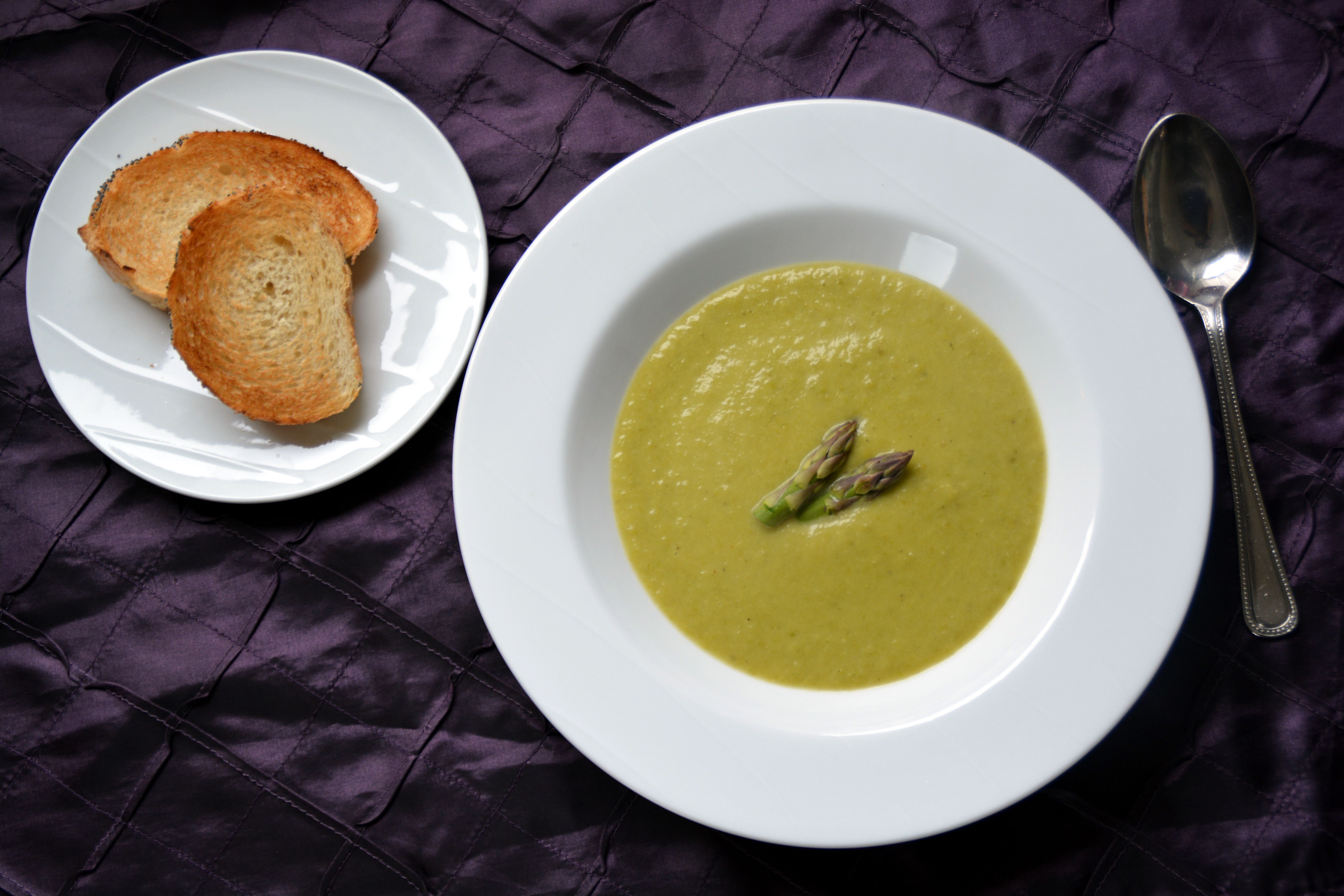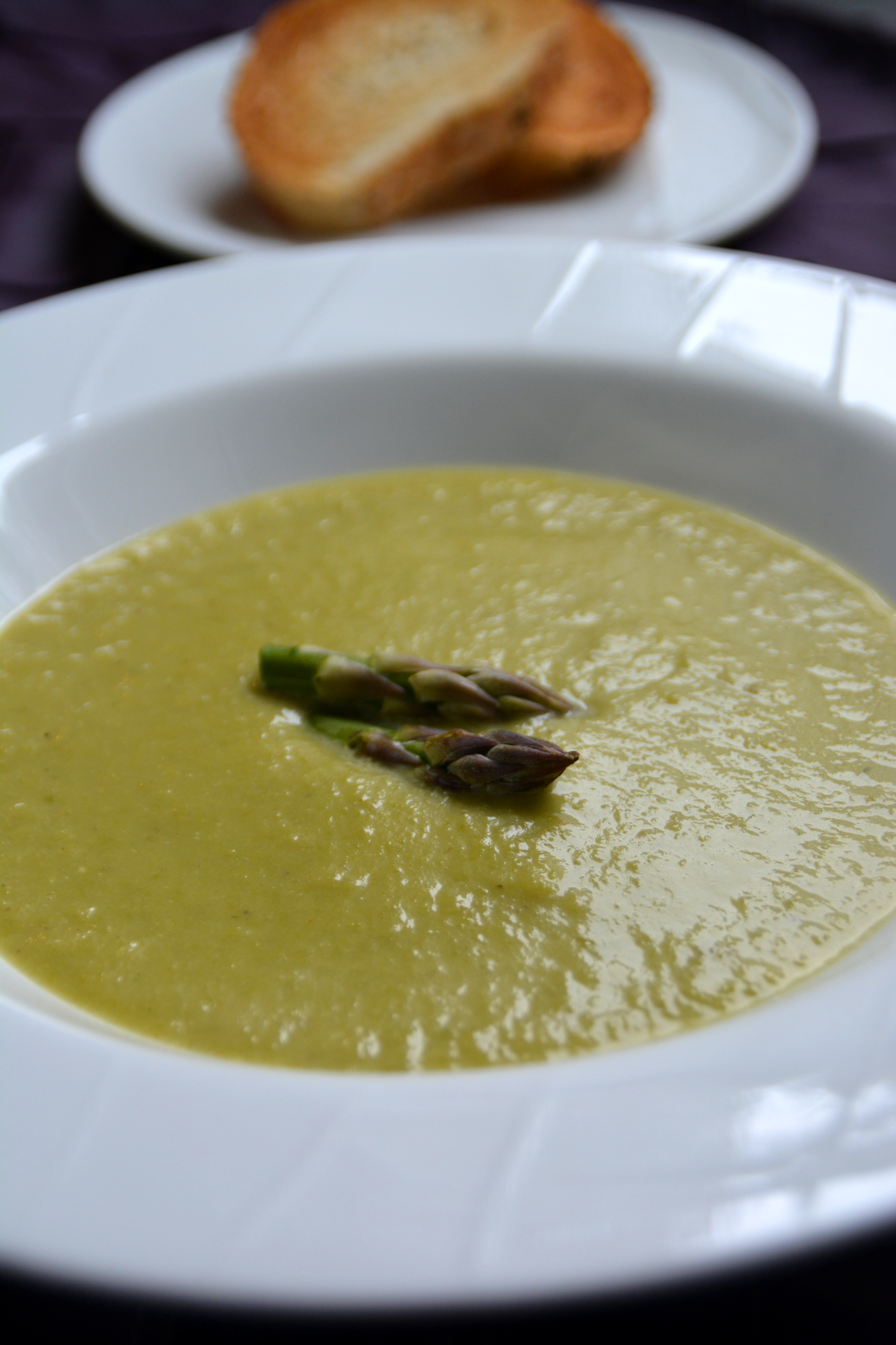 Bland med håndmikser på en glatt krem, ikke glem å spare noen aspargeshoder for dekorering.