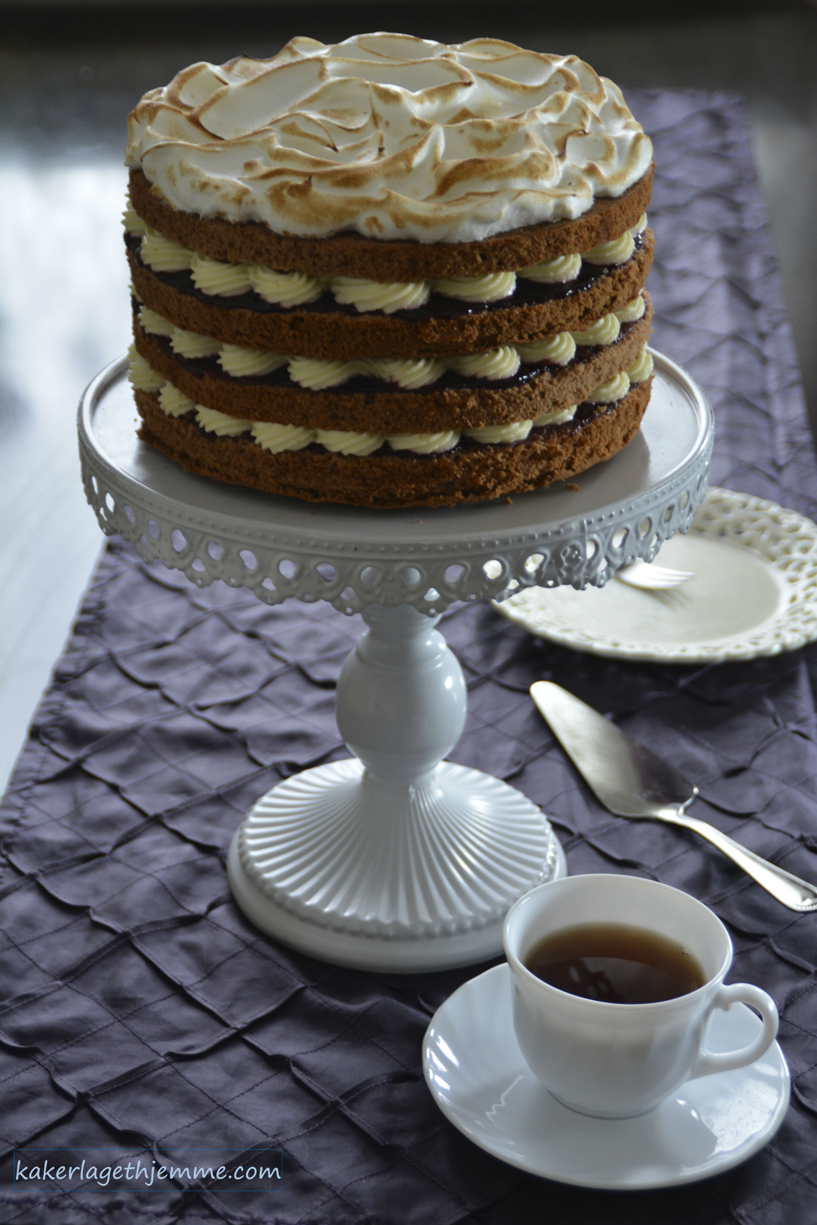 Plasser generøs mengde fyllet i mellom hver av kakebunn lagene.