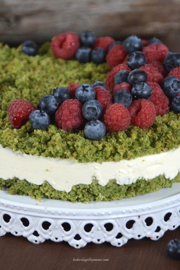 Del cupcake røren jevnt i de 12 formene, og sett bakeformen med cupcake røren i ovnen. Stek i 12-15 minutter, eller inntil en tannpirker innsatt i midten av en cupcake kommer ut ren. Avkjøles i formen i noen minutter, og deretter overføres til risten for å avkjøle helt. Dekorer med bringebær smørkrem og sukker blomster eller bringebær.