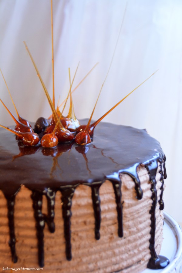 Varm opp fløte, sukker, kakao og salt i en kjele inntil det begynner å koke. Fjern fra varmen.