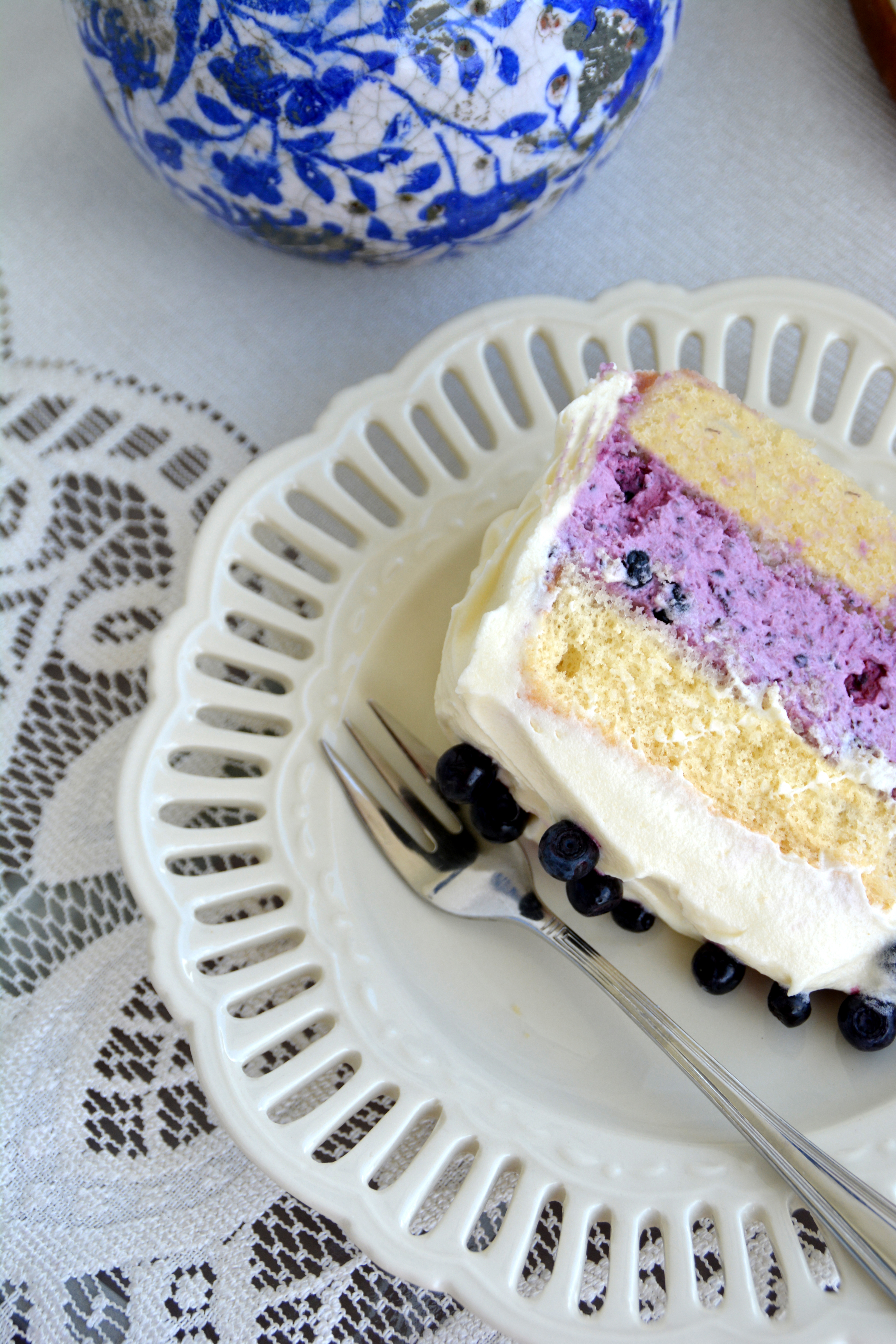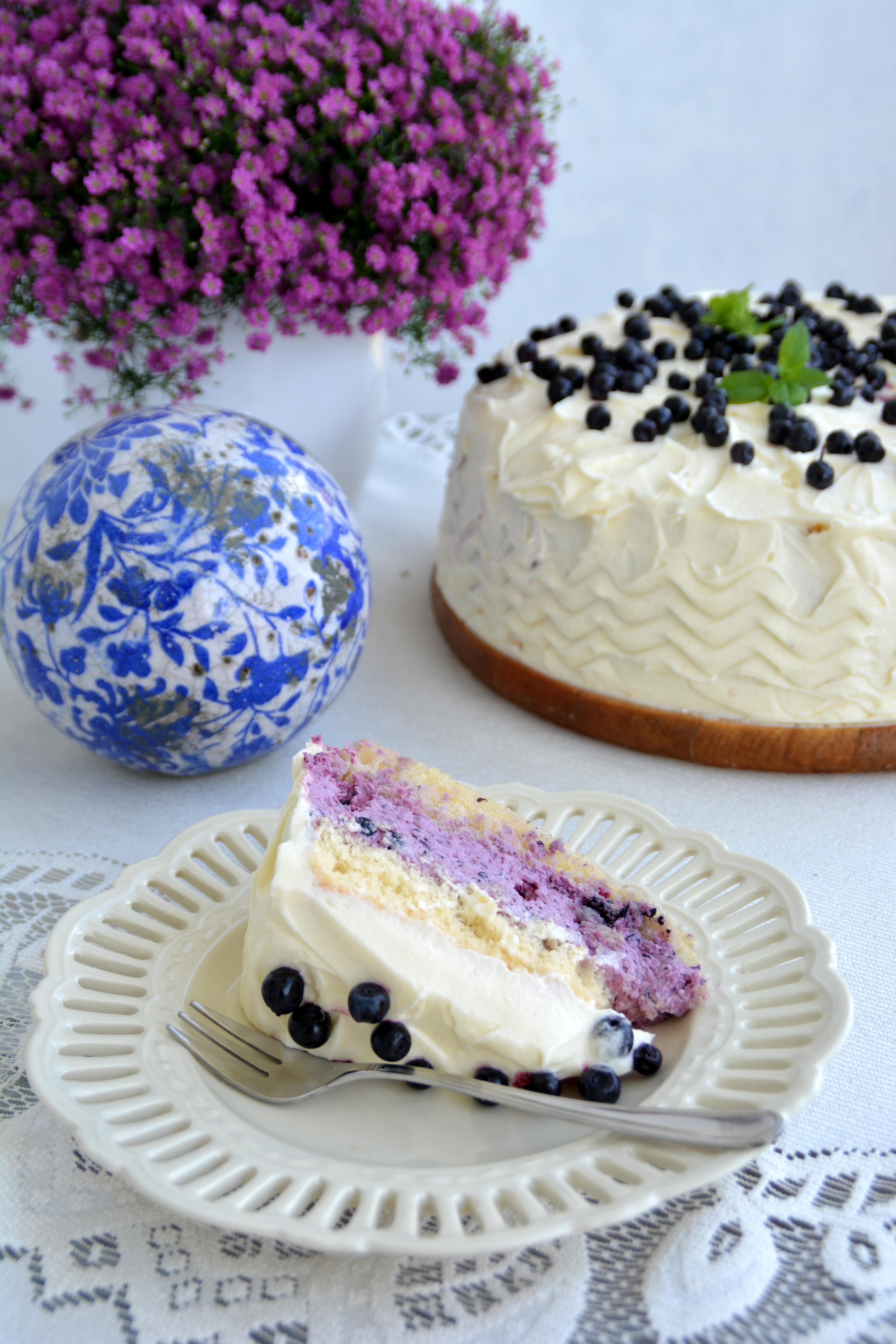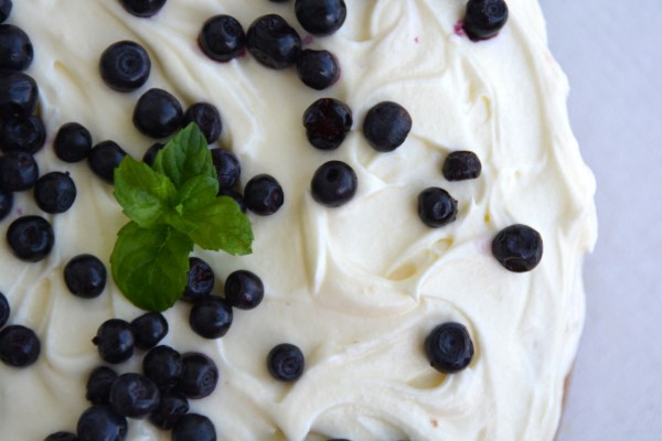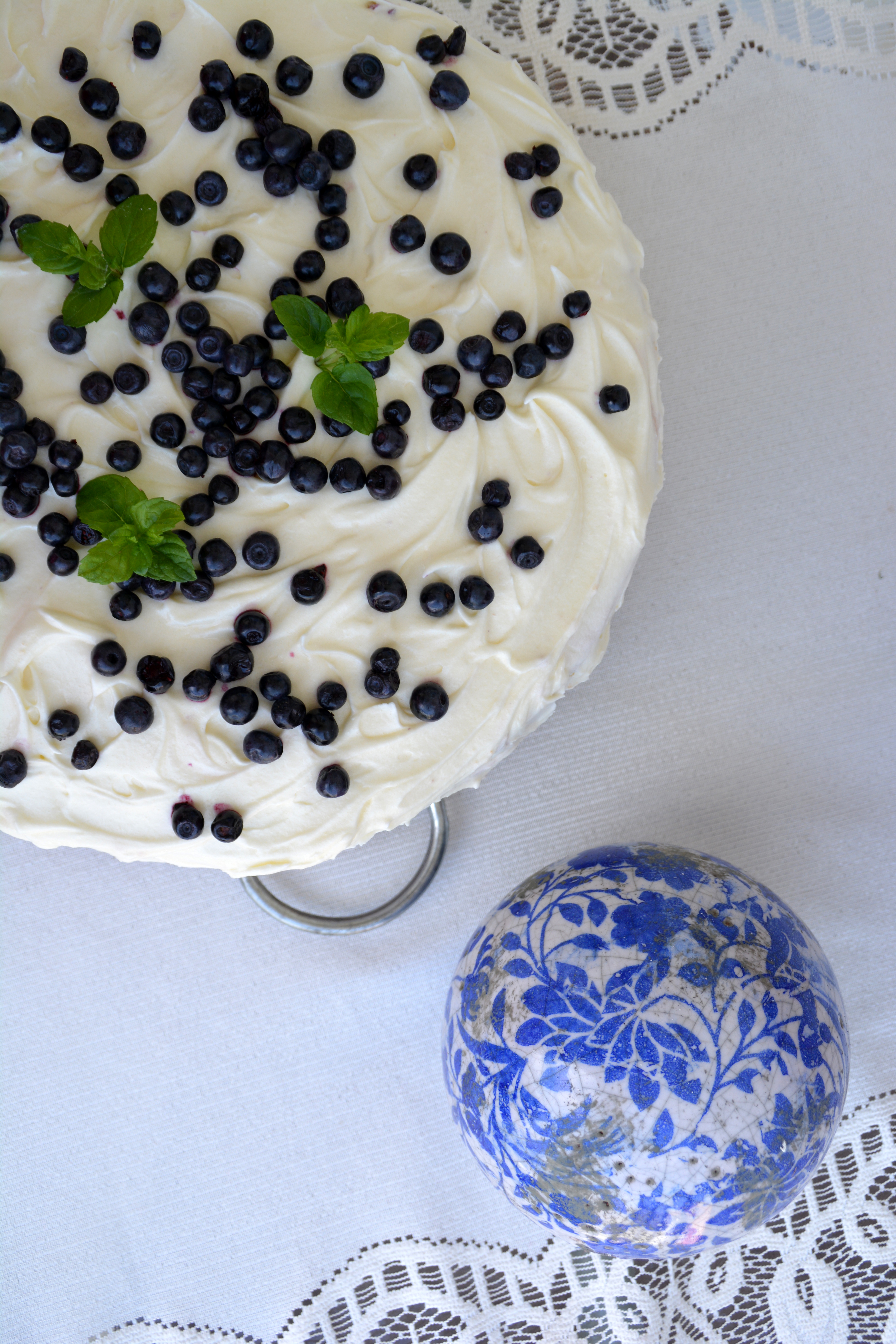 Gjør kremaktig fylling ved å blande myknet Mascarpone ost med melis, sitronsaft og sitron skall og blåbær.